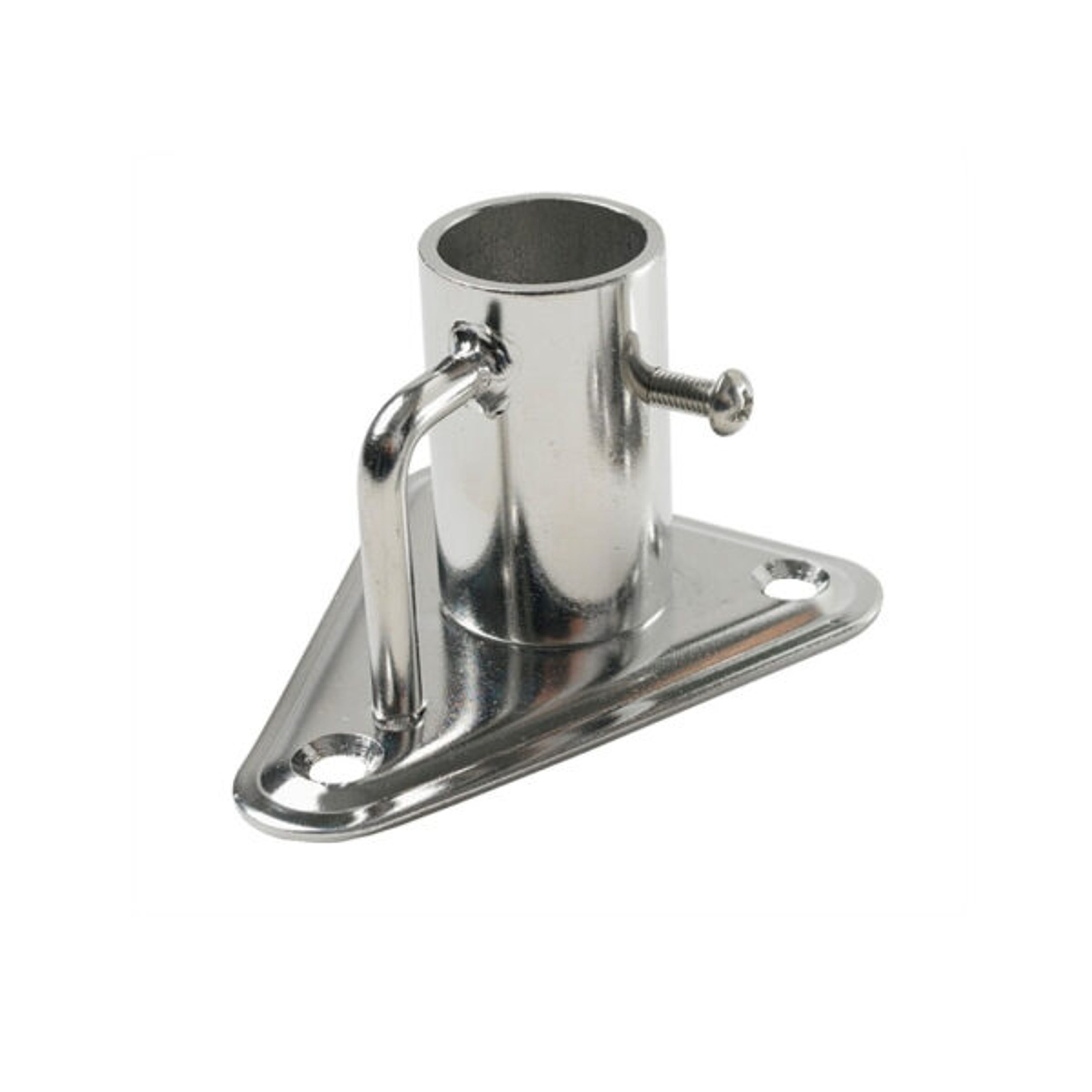 90 asteen kulmassa oleva jalka veneen kaidepylväälle. Toimituksessa mukana kierretappi. Valmistettu ruostumattomasta haponkestävästä teräksestä (Aisi 316)
