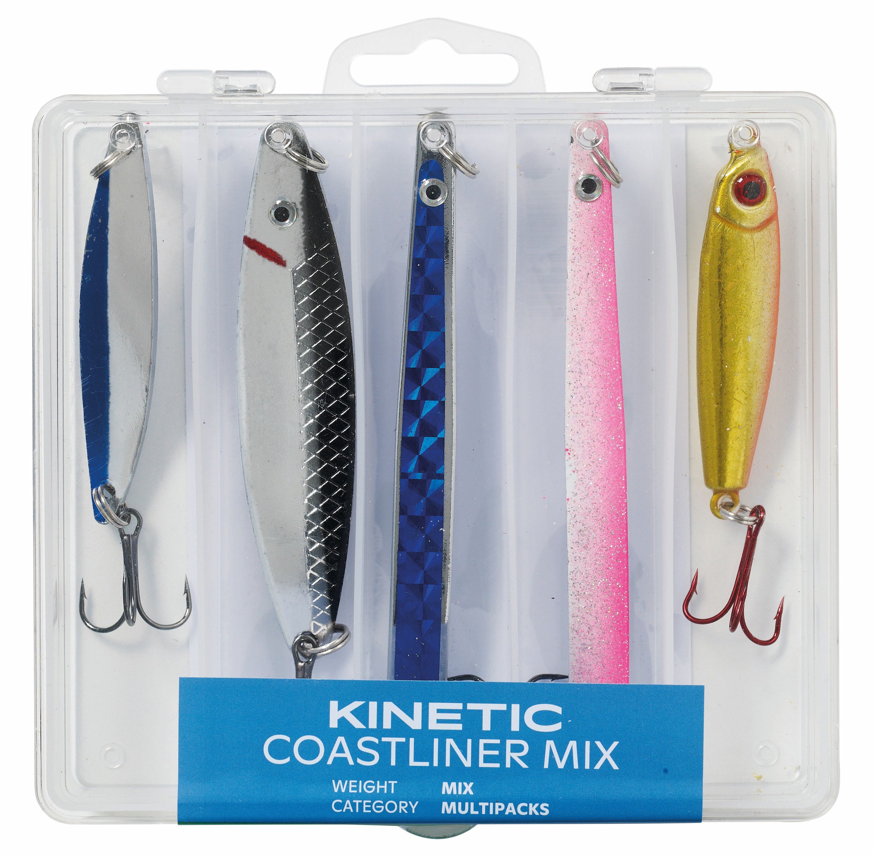 Kinetic Coastliner Mix (5-pack) är ett beteskit med fem olika beten för kust- och havsfiske. Ett komplett kit för dig som fiskar vid havet!