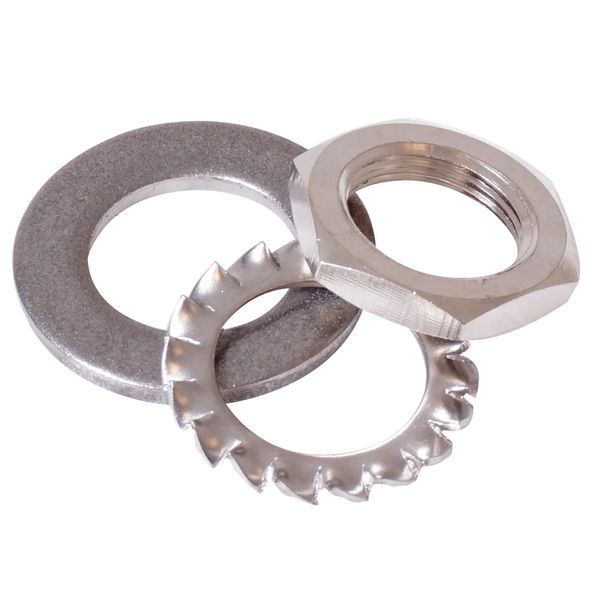 Mutteri ja hammastettu aluslevy Glomex VHF-antennia varten.