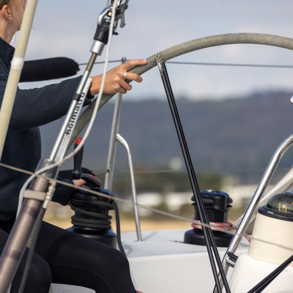 Vesillä QuickTrim-järjestelmän käyttö on intuitiivista. Kun pidät yhdellä kädellä yläkantta kiertämällä sitä vastapäivään, irrotat otteen köydestä, jotta voit tehdä nopeita säätöjä. Kun päästät irti yläsuojuksesta, se jousittuu takaisin ja tarttuu köydestä kiinni, jolloin se palaa normaaliin käyttöön. Tämä yksinkertainen ja luotettava toiminto on suuri etu usein toistuvissa, pienemmissä trimmauksissa.