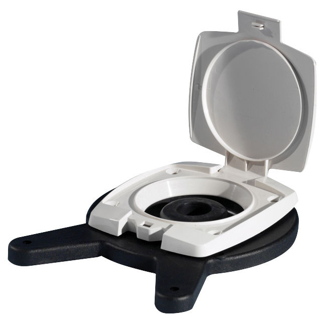Valaan muovinen kansilevy, jossa on kansi ja 4 reikää. Whale MK5 pilssipumppuun BP0510